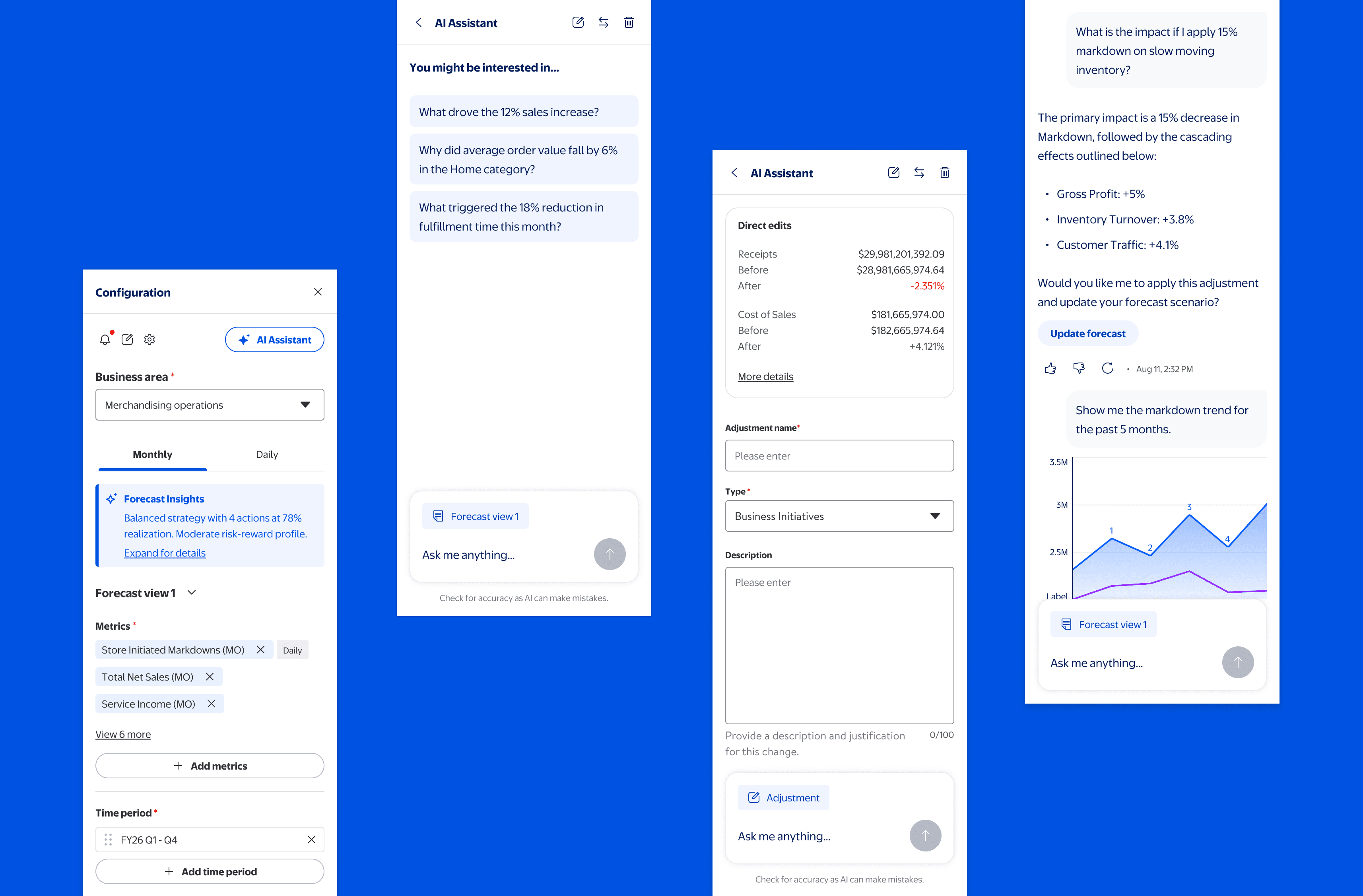 Lead design strategy and end-to-end execution for 0–1, AI-first enterprise financial and operational forecasting products. Manage a cross-functional design team focused on AI-assisted forecasting actions, multi-user collaboration, and insights generation.