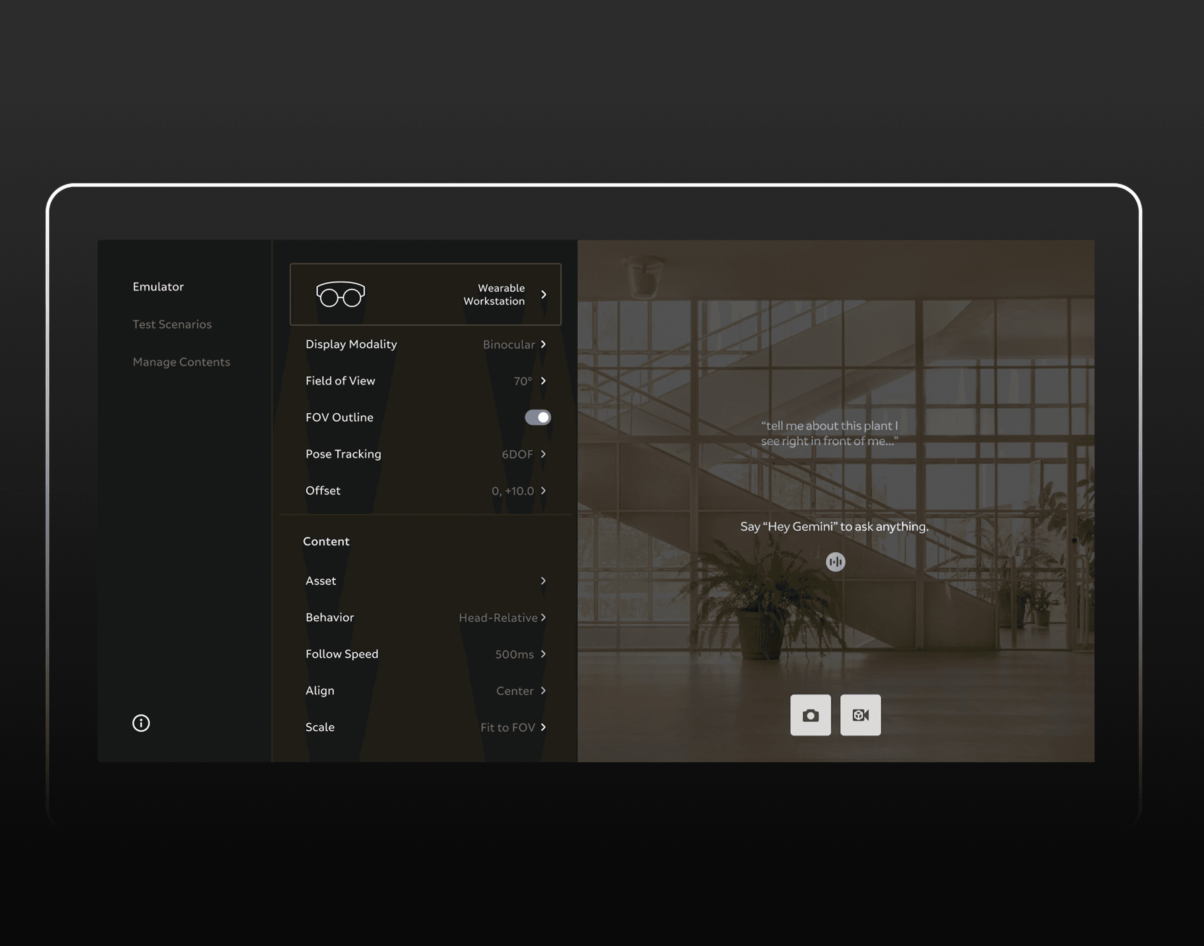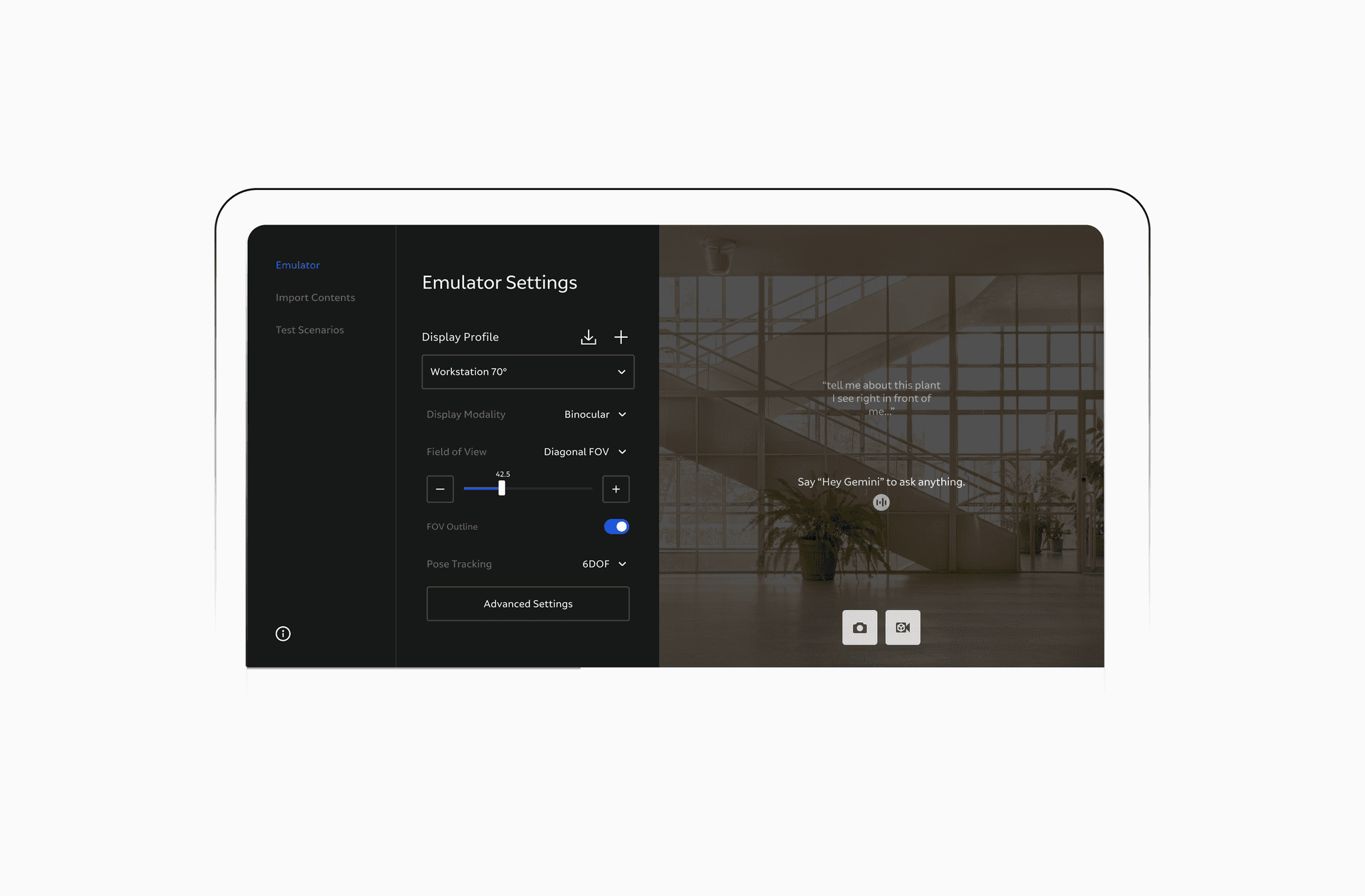 As part of Magic Leap’s expanded partnership with Google🔗, I led the product design for developer-facing AR tools and emulation workflows that enable reliable prototyping for next-generation AR glasses.